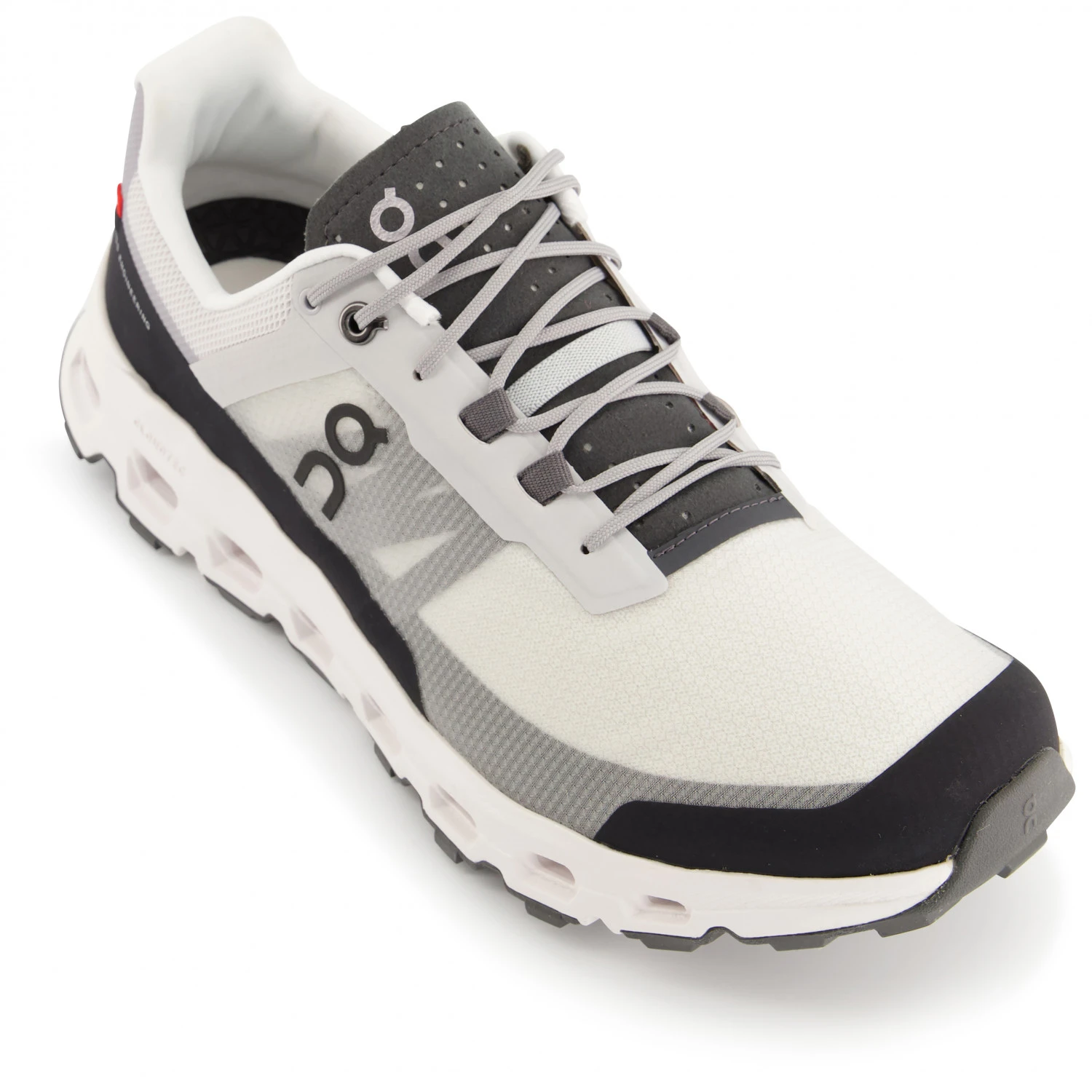 In the toe area, the shoes have been reinforced with rubber to optimally protect your toes against stones, roots and scree in technical terrain. Precise quick lacing offers your feet a secure hold in the shoes. A breathable mesh fabric in the upper makes the On Cloudvista the first choice for your next trail run through the forest or a park.